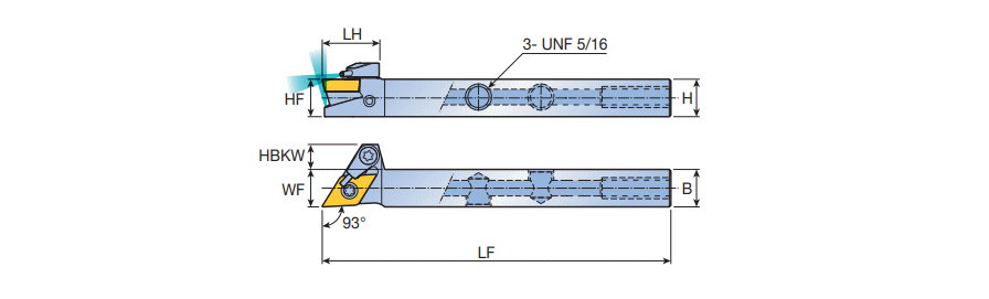 Screw type high pressure coolant holders with 93° approach angle & 55° DC.T positive inserts for Swiss type automatic lathes