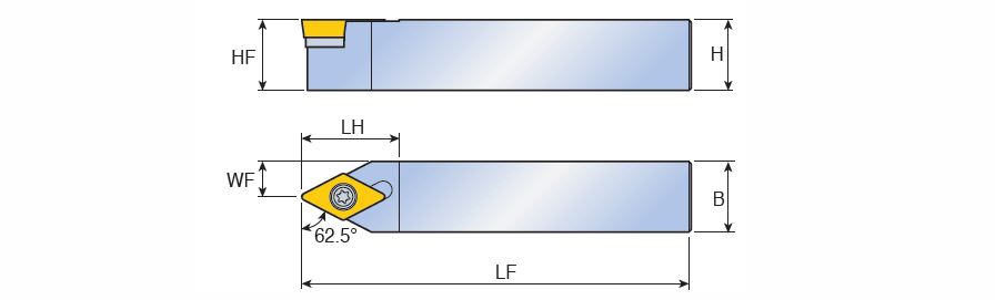 Screw type holders with 62.5° approach angle on positive 55° Rhombic inserts of 7° clearance angle