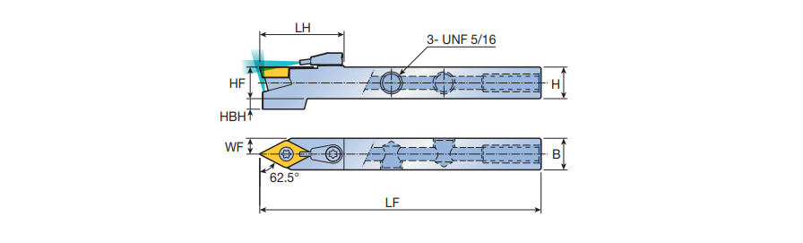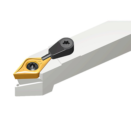 Screw type high pressure coolant holders with 62.5° approach angle & 55° DC.T positive inserts for Swiss type automatic lathes