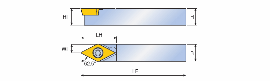 TOPMINI screw type holders with 62.5° approach angle & 55° DC.T positive inserts for Swiss type automatic lathes