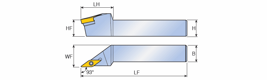 Screw type holder with 93° approach angle for negative 35° Rhombic inserts
