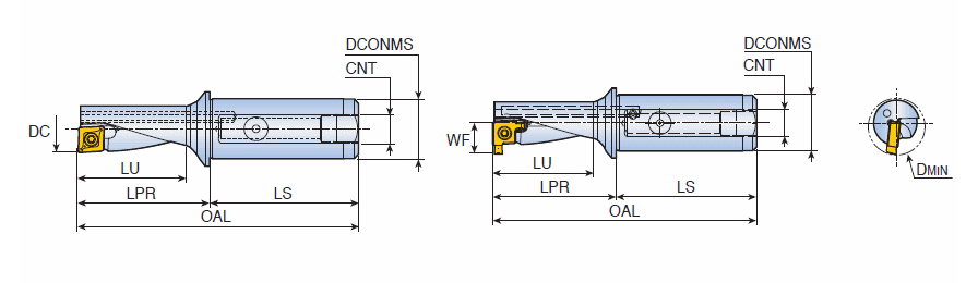 Multifunction tools for drilling, boring, facing, grooving & external turning with maximum 2.25xD length & coolant holes