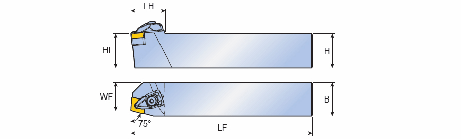 RHINOTURN T-holders with 75° approach angle for CN.. 0904 inserts using 100° corner