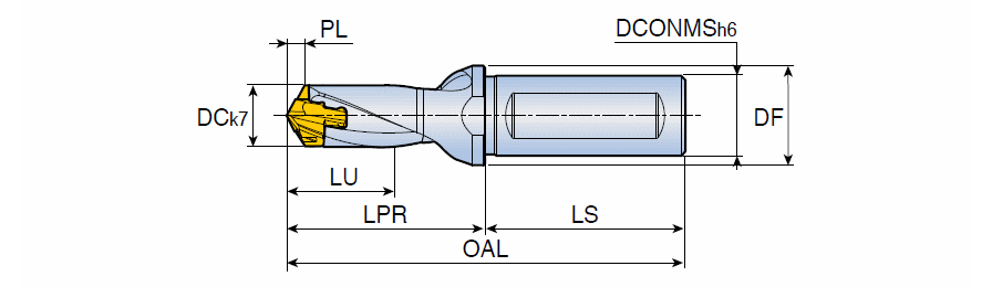 Head changeable drills with Weldon shank (1.5xD) and coolant holes