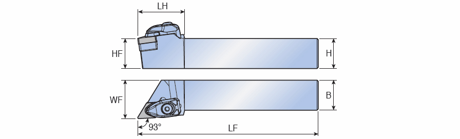 T-holder with 93° approach angle for negative 55° Rhombic ISO type Ceramic inserts without hole