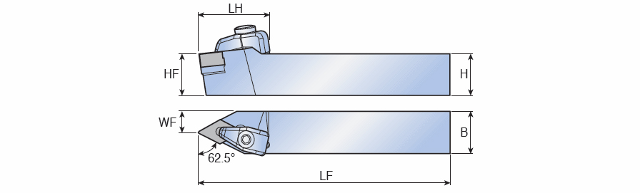 T-holders with 62.5° approach angle for negative 55° Rhombic Ceramic Dimple inserts