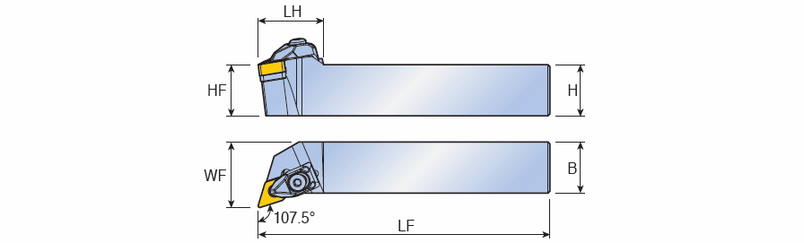RHINOTURN T-holders with 107.5° approach angle for DN.. 1305 inserts