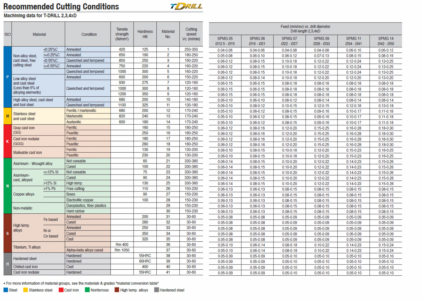 Indexable drills with square inserts & enlarged chip gullet from twist coolant holes in drilling depth of 2xD