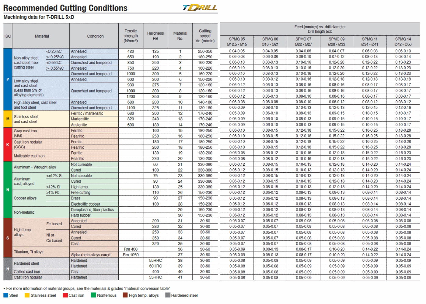 Indexable drills with square inserts & enlarged chip gullet from twist coolant holes in drilling depth of 5xD
