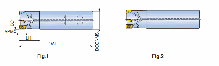 90° End mills with high positive two helical cutting edges of APKT 12 inserts