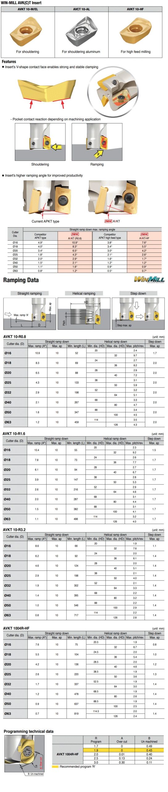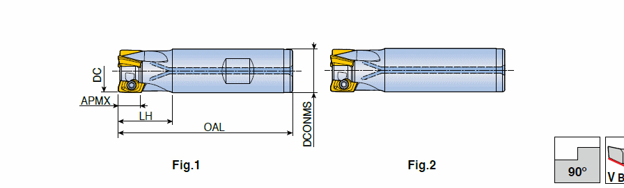 90° End mills with high productivity AVK(C)T inserts for shoulder milling
