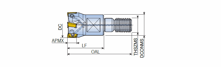 90° End mills with T-FLEXTEC modular adaptation & high positive two helical cutting edges of AXMT 06 inserts