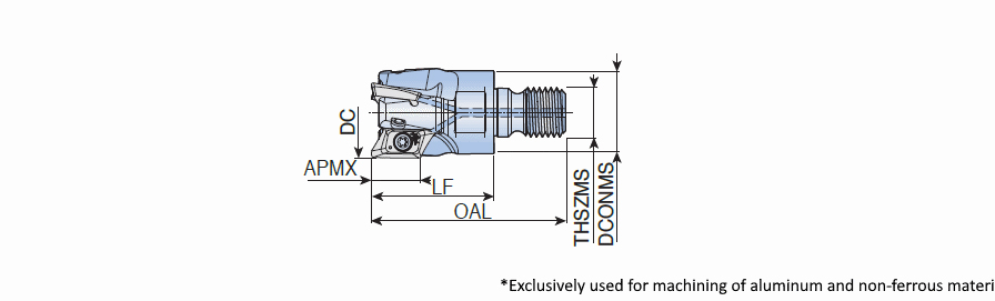 90° Modular end mills with T-FLEXTEC adaptation & high positive 2 helical cutting edges of V bottomed XEVT inserts for high speed aluminum machining