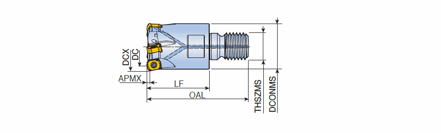 High feed end mills with BLMP 06 inserts of 4 cutting edges and T-FLEXTEC modular adaptations in max. ap 1.0 mm