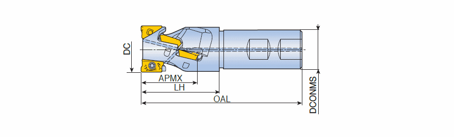 Extended flute end mills with high positive AXMT 06 inserts in full effectiveness