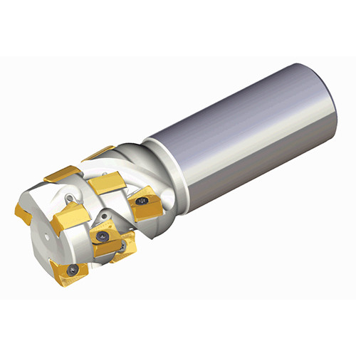 Extended flute end mills with 4 helical cutting edges of double-sided AN 11 inserts