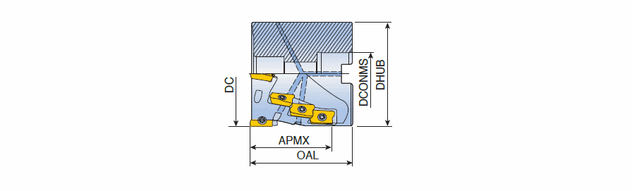 Extended flute shell mills with helical two cutting edges inserts of APKT 12