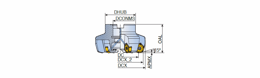 High feed face mills with 12 cutting edges of double-sided HN 10 inserts for facing only