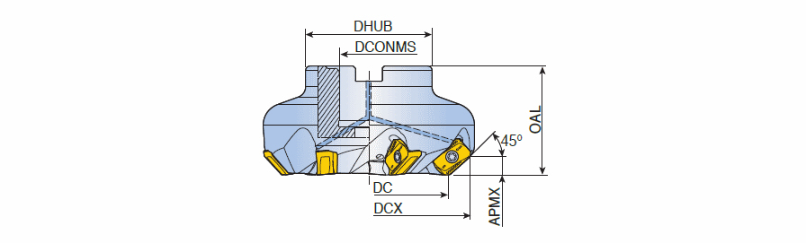 45° Face mills with 4 positive helical cutting edges of double-sided inserts AN 16