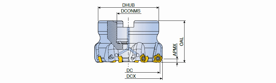 65° Face mills of economical 10 cutting edges inserts with high positive rake angles for general milling in maximum depth of cut ap 3.3 mm
