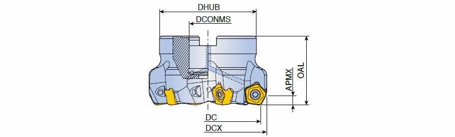 65° Face mills of economical 10 cutting edges inserts with high positive rake angles for general milling in maximum depth of cut ap 6.5 mm