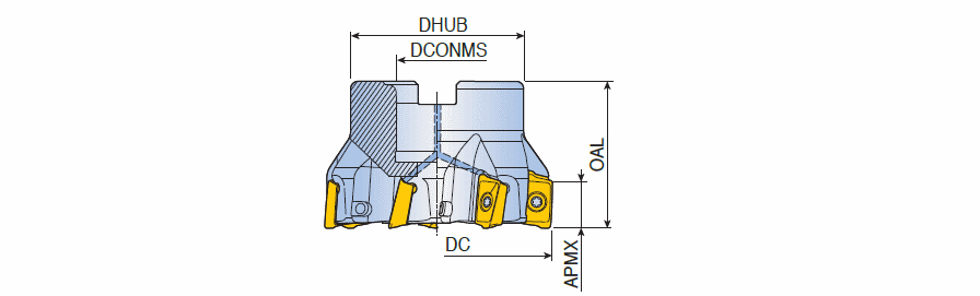90° Face mills with high positive two helical cutting edges inserts of AP.. 17