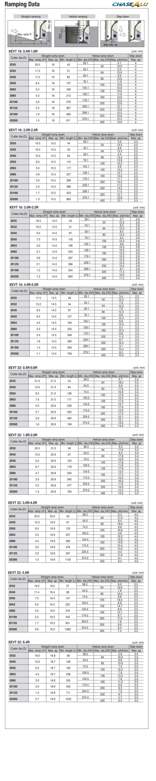 90° Face mills with very high positive rake angle & two helical cutting edges inserts of XEVT 16/22 for high speed aluminum machining