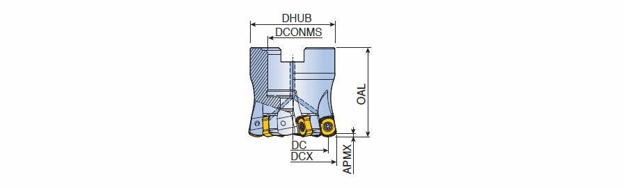 Application:, Facing, Helical Interpolation, High Feed Milling, Profiling, Rampdown, Connection Diameter Machine Side (DCONMS): 16 mm