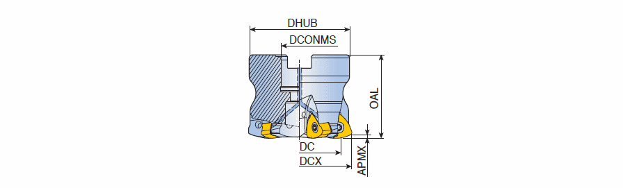Application:, Facing, Helical Interpolation, High Feed Milling, Profiling, Rampdown, Connection Diameter Machine Side (DCONMS): 31.75 mm