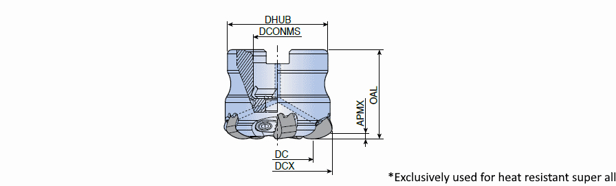 High Feed mills with negative Ceramic inserts of 6 cutting edges & air holes for high speed machining of super alloys in wedge clamping type