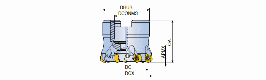 High Feed mills with PTKU 05 inserts of economical 10 cutting edges in maximum depth of cut ap 1.5 mm