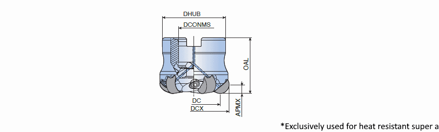 Face mills with negative round RNGN 12 ceramic inserts & wedge clamp with air hole for high speed milling of super alloys