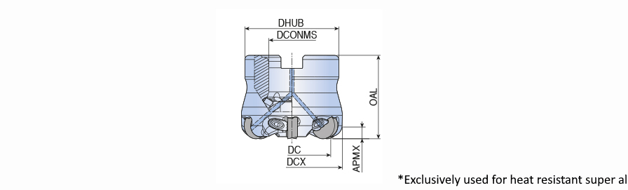 Face mills with positive round RPGN 12 ceramic inserts & wedge clamp with air hole for high speed milling of super alloys with low cutting force