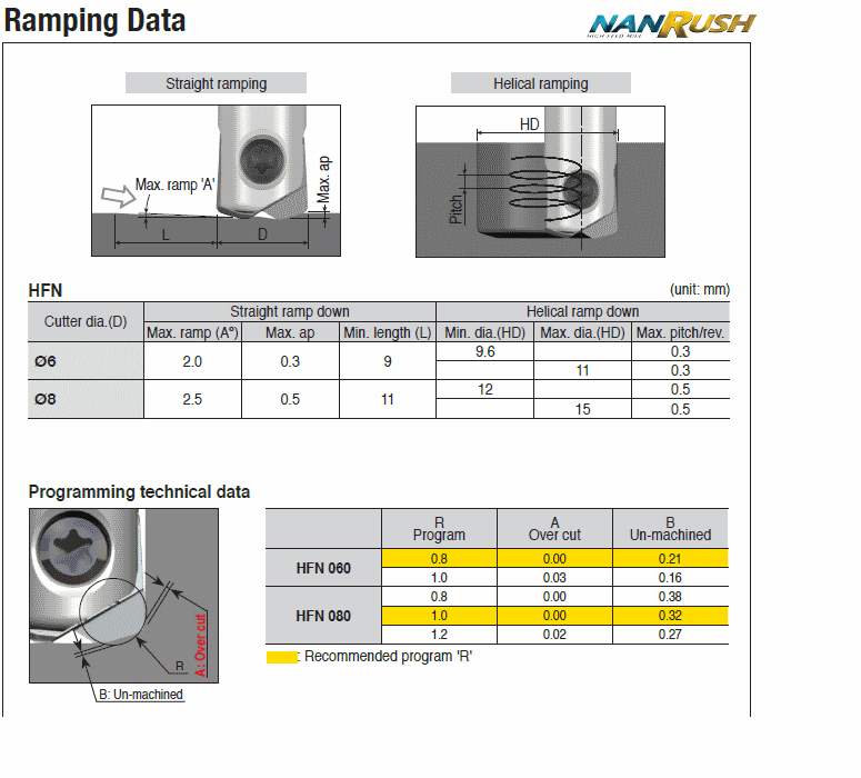 Nano High Feed end mills with High Feed HFN inserts & carbide shank for better rigidity & miniature components