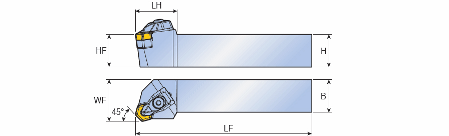 T-holders with 45° approach angle for negative 120° Hexagonal inserts