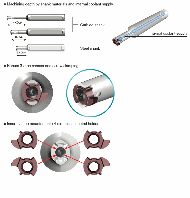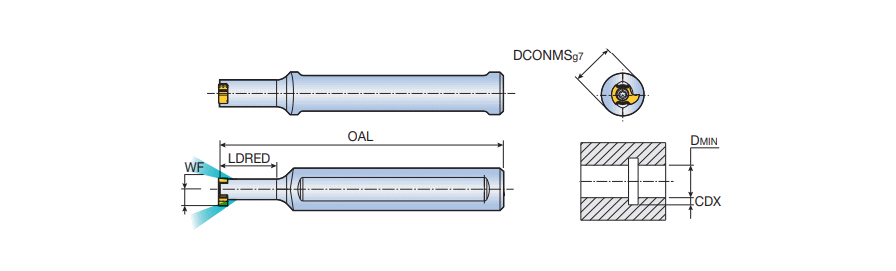 Small size boring bar with coolant holes for internal shallow grooving on small diameter Dmin=10mm with TMIS 8 inserts