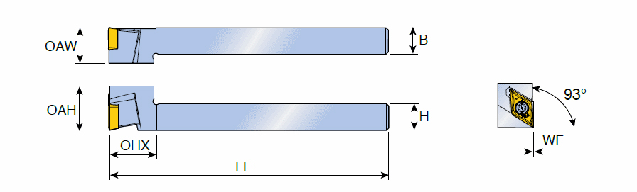 Application:, Ext 93° App 55°Diamond, Tools for Swiss Machines, Y Axis holders, Shank Width (B): 16 mm
