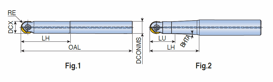 End mill holders with cylindrical steel shank & NFB or NFR inserts for finishing operations