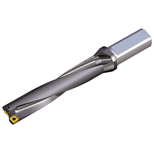 Indexable drills with unique square inserts & coolant holes, drilling depth 5xD
