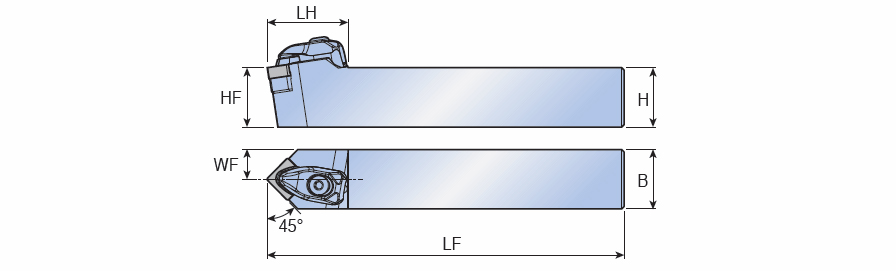 T-holders with 45° approach angle for negative Square ISO type Ceramic inserts without hole