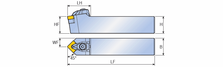 T-holders with 45° approach angle for negative Square inserts