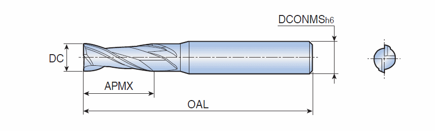 Solid carbide end mills with flat type & medium & 2 flute for general purpose of pre-hardened steels, tool steels, alloy steels and carbon steels