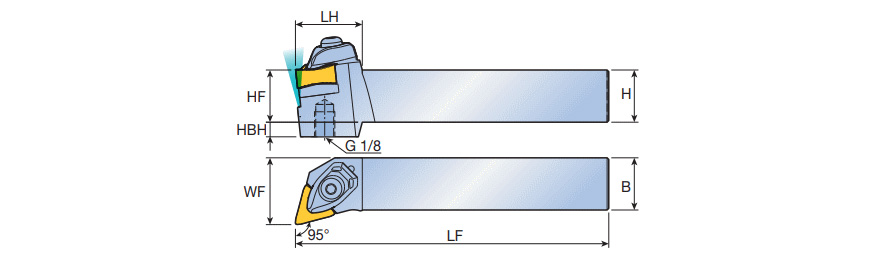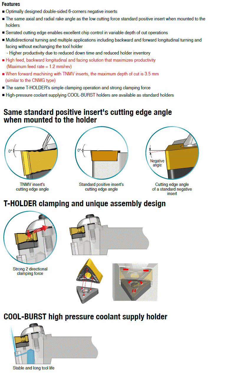 T-holders for high pressure coolant with 95° approach angle and TNMV 6 corner negative triangular inserts