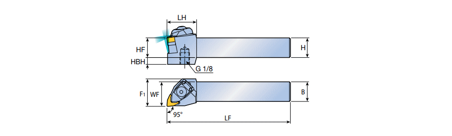 RHINOTURN T-holders for high pressure coolant with 95° approach angle & WN.X 0604 trigon inserts