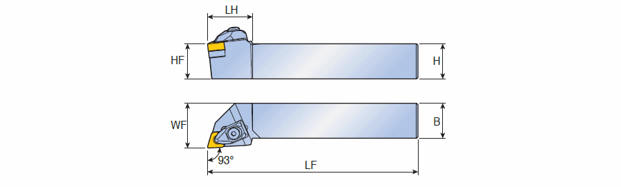 RHINOXTURN T-holders with 93° approach angle & corner angle 70° XNMG inserts for external turning & profiling