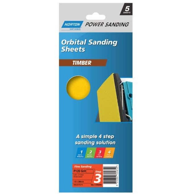 Home » Shop » CUTTING TOOLS (HSS & Carbide) » ABRASIVES » ORBITAL SHEETS TIMBER » TIMBER 115x280mm 5PK FINE P120 STEP 3 RETAIL PACKED ORBITAL SHEETS
