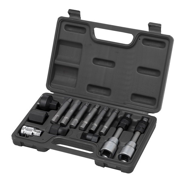 Six and twelve point socket bits suit Bosch type alternator free wheel drive pulleys