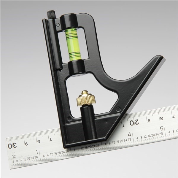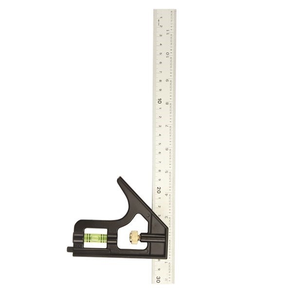 Suitable for use as inner or outside try square, mitre square, horizontal, 45° and plumb level, depth and marking gauge and rule