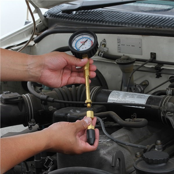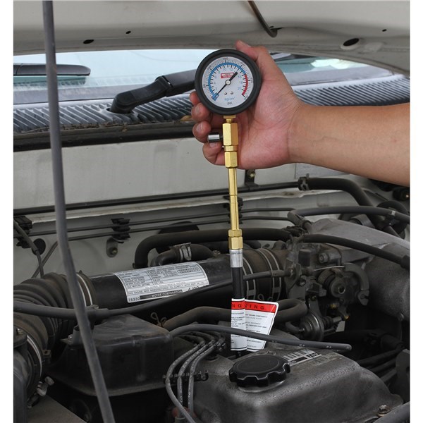 Versatile kit provides a quick means of testing cylinder compression pressure on engines with deep, recessed spark plugs and difficult access