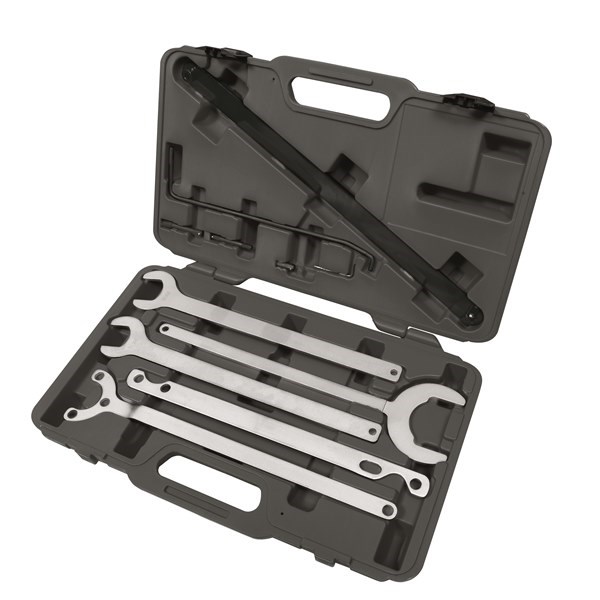 Contains locknut spanners 32, 36, 65 (mm) and fan belt service wrench for idler pulley tensioner nuts